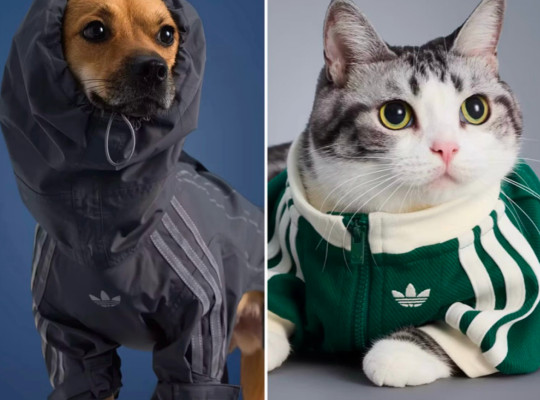 Adidas wypuścił kolekcję ubrań dla psów i kotów! Mini dresy, kurtki i bluzy z trzema paskami wyglądają jak wersje stworzone dla ludzi.