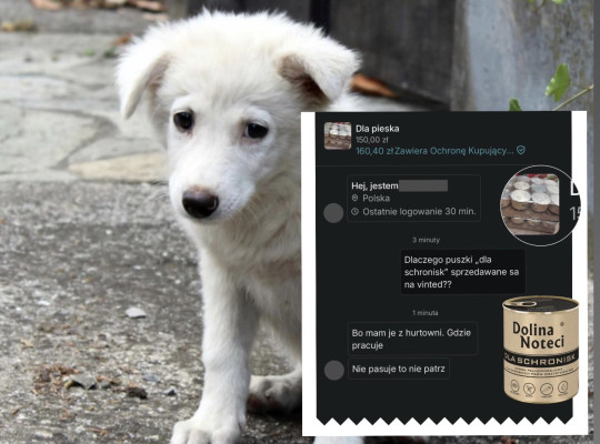 Dolina Noteci przekazała bezpośrednio do schronisk karmę z etykietą „Dla schronisk”. Teraz producent informuje, że przekazane przez nich dary pojawiły się w ogłoszeniu na Vinted.