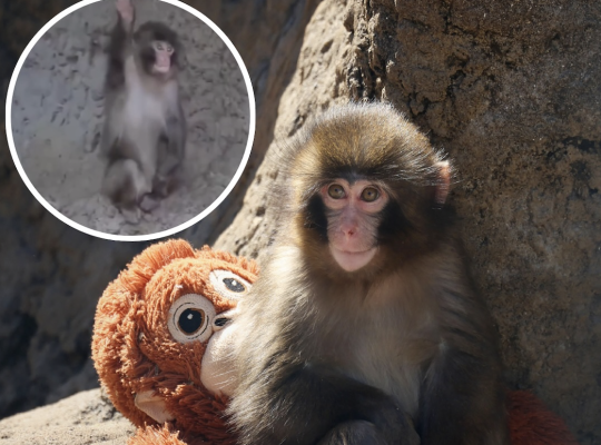 Punch, mały makak japoński, który stał się viralem po tym, jak został odrzucony przez matkę, nauczył się machać na dowidzenia.