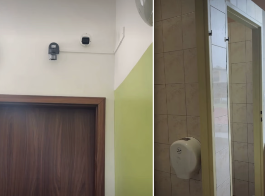W toaletach w szkole podstawowej w Zgierzu nie ma drzwi, ale za to są kamery, które nagrywają dzieci.